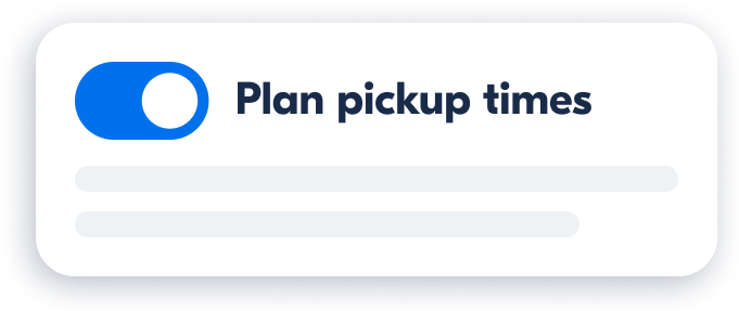 With Prescheduled Pickup Times, you can set exact pickup times for each location just once – and they'll automatically apply to every new booking.